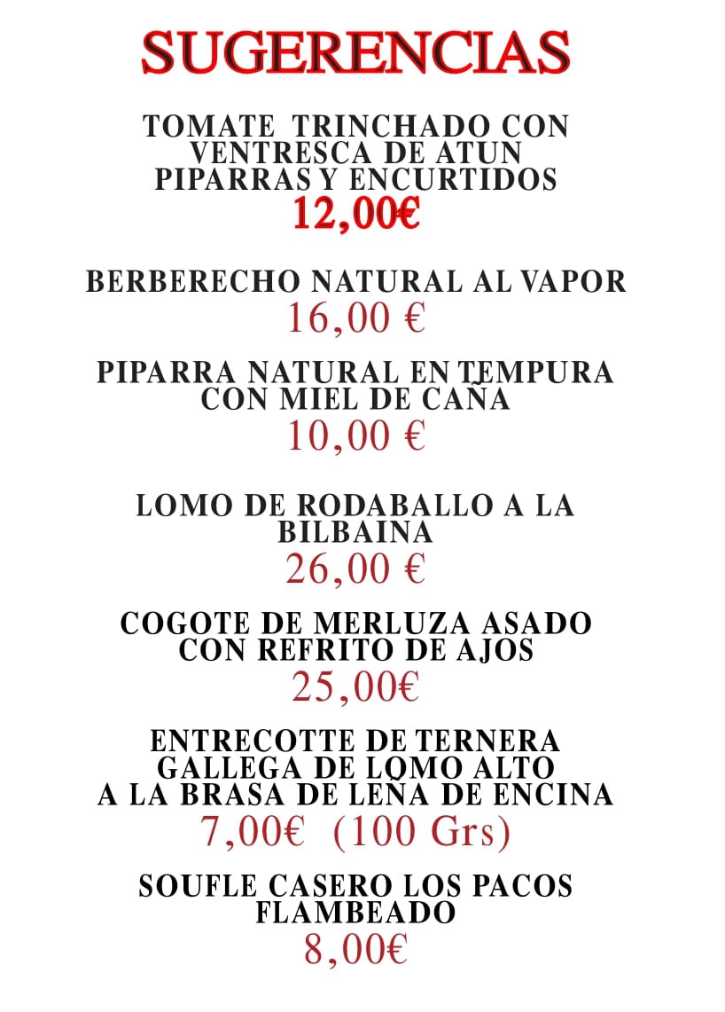 NUESTRAS SUGERENCIAS DEL CHEF ESTÁN DISPONIBLES LOS SÁBADOS, DOMINGOS Y FESTIVOS.
